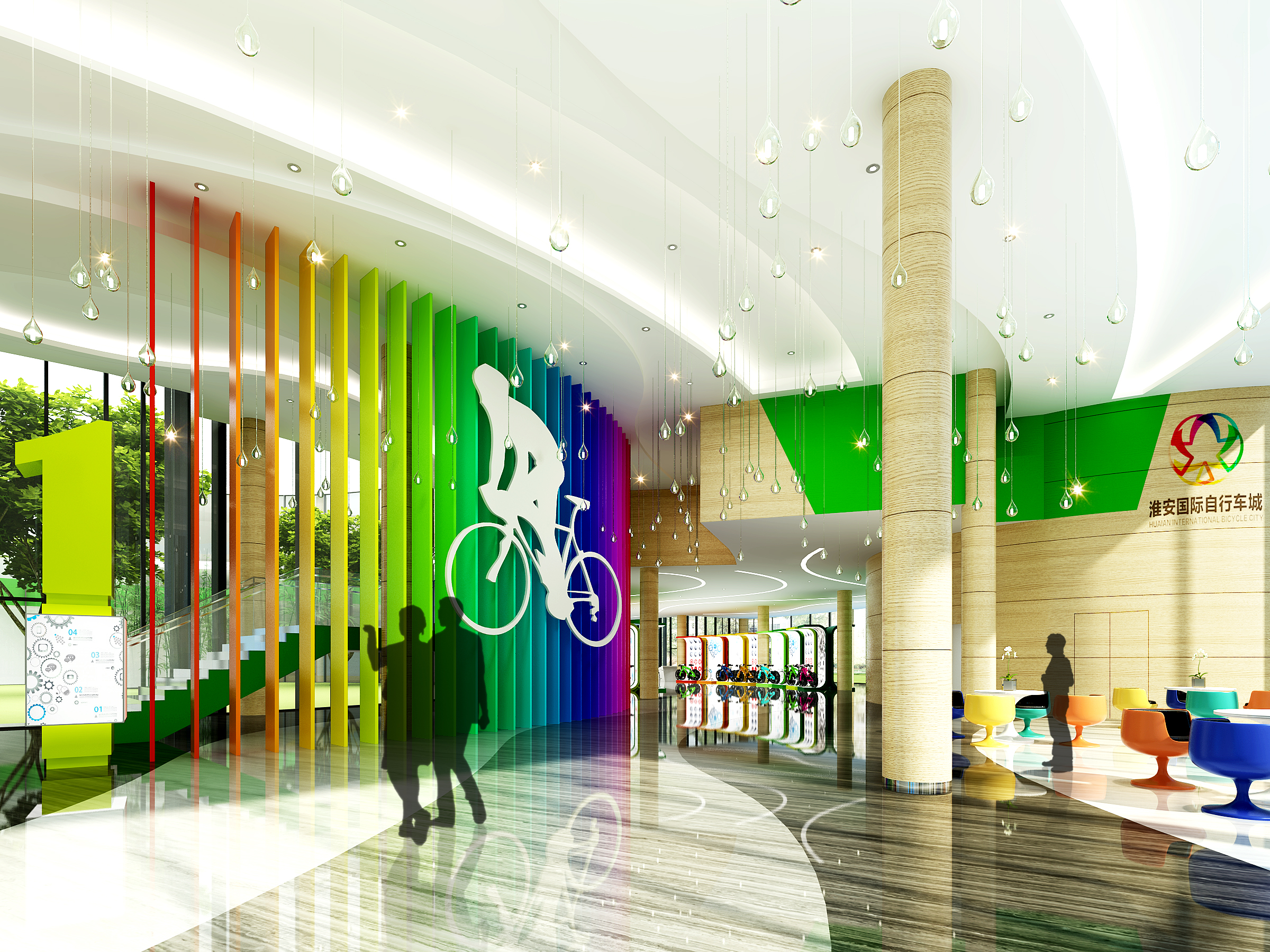 國際自行車城的設計突出兩大核心空間點:一個是充滿活力的自行車生活聚集中心,另一個是高效優美的開放空間。我們著力打造國內領先的專業化 “自行車主題體育文化城”模式,將自行車文化概念融入整個綜合體,集銷售、展示、文化創意、餐飲娛樂、休閑互動體驗多功能于一體??梢哉f,我們打造的不僅僅是單純的自行車城,還是一種順應自然綠色環保的慢生活的態度,一種引領潮流的騎行體育文化。