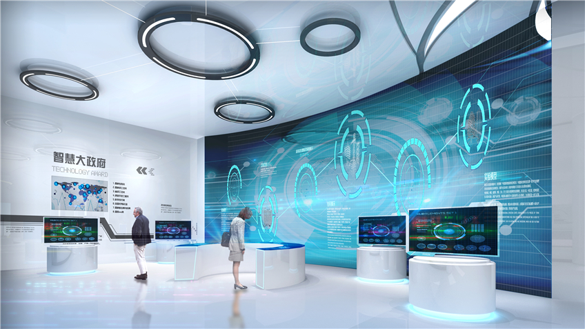 邳州市大數(shù)據(jù)中心展廳,位于邳州市新城區(qū)行政中心東側(cè),以“打造智慧城市新標(biāo)桿,呈現(xiàn)強(qiáng)富美高新邳州”為布展主題,共分為序廳、時(shí)光隧道、智慧政府、互聯(lián)網(wǎng)+應(yīng)用、大數(shù)據(jù)時(shí)代、游戲互動(dòng)區(qū)、未來環(huán)幕影院六大板塊,是一個(gè)極具現(xiàn)代感、科技感、時(shí)代感的智慧化展廳。