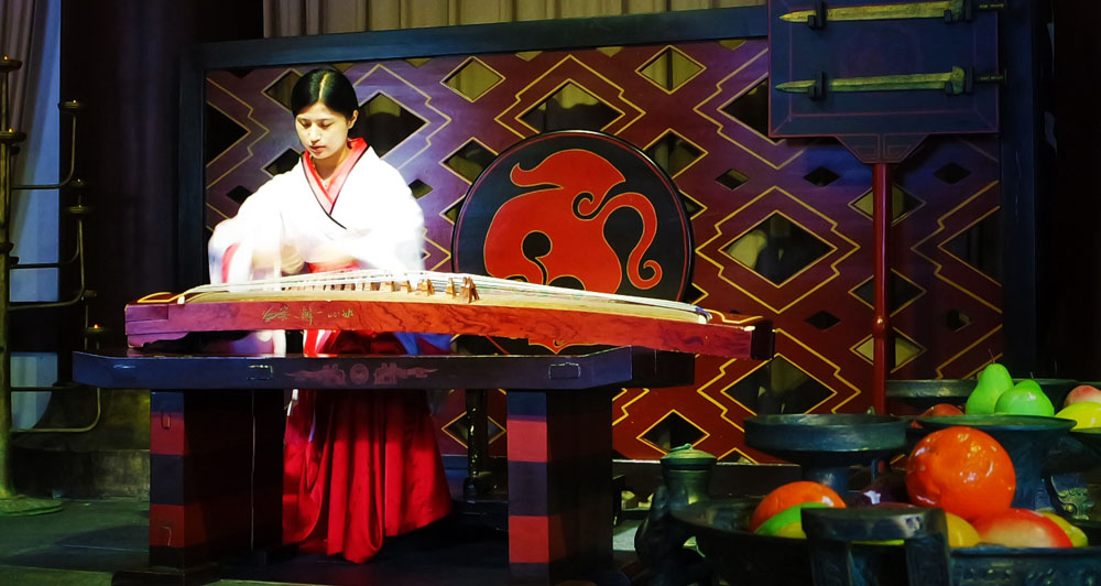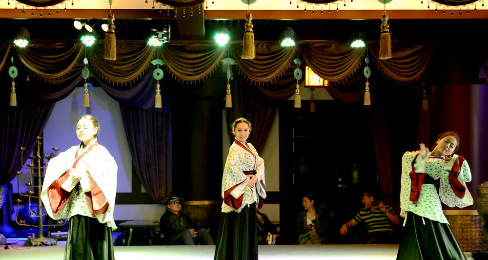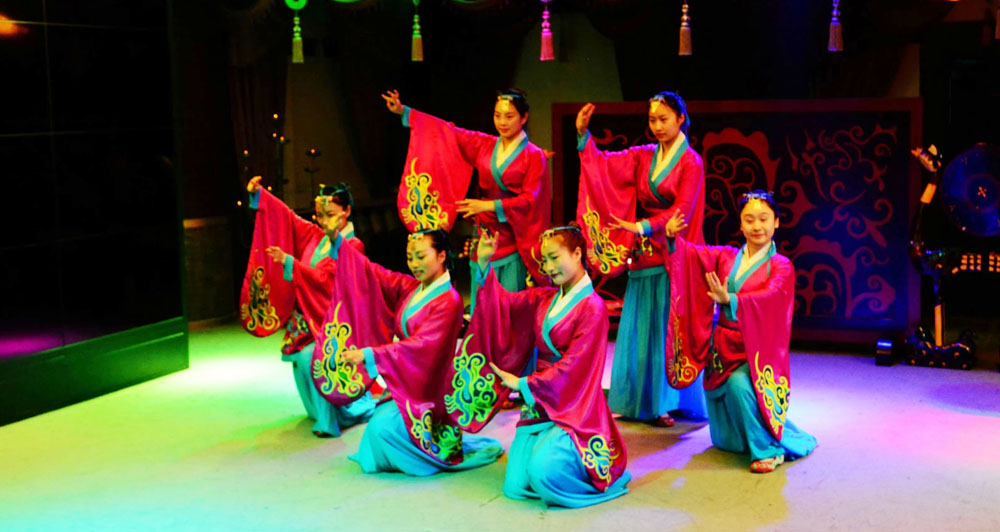 文化演藝是文化產(chǎn)業(yè)體系中極具創(chuàng)意性質(zhì)和輻射拉動作用的的核心產(chǎn)業(yè)之一。《楚漢舞蹈》依托宿遷項王故里景區(qū)策劃運營,漢代乃禮儀之邦,楚漢時期的琵琶曲也為之盛名,舞蹈由十名女舞者身著漢代時期服裝,在琵琶古樂的背景下,運用民族舞漢代時期典型的風(fēng)格特色,來尋求漢代禮儀之邦的文化場景。