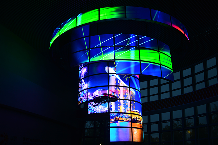 國內首個OLED曲面拼接雕塑懸掛在挑高三層的展廳中央,給產業園帶來了非比尋常的震撼視覺。