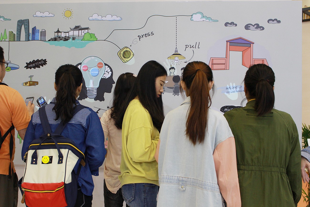 4月19日,2018第七屆“中國蘇州文化創意設計產業交易博覽會”在蘇州國際博覽中心開幕。蘇州金螳螂文化發展股份有限公司展出的AR增強互動“海底世界”和生物電感知觸摸互動“霍格沃茲墻”吸引了許多參觀者的駐足。