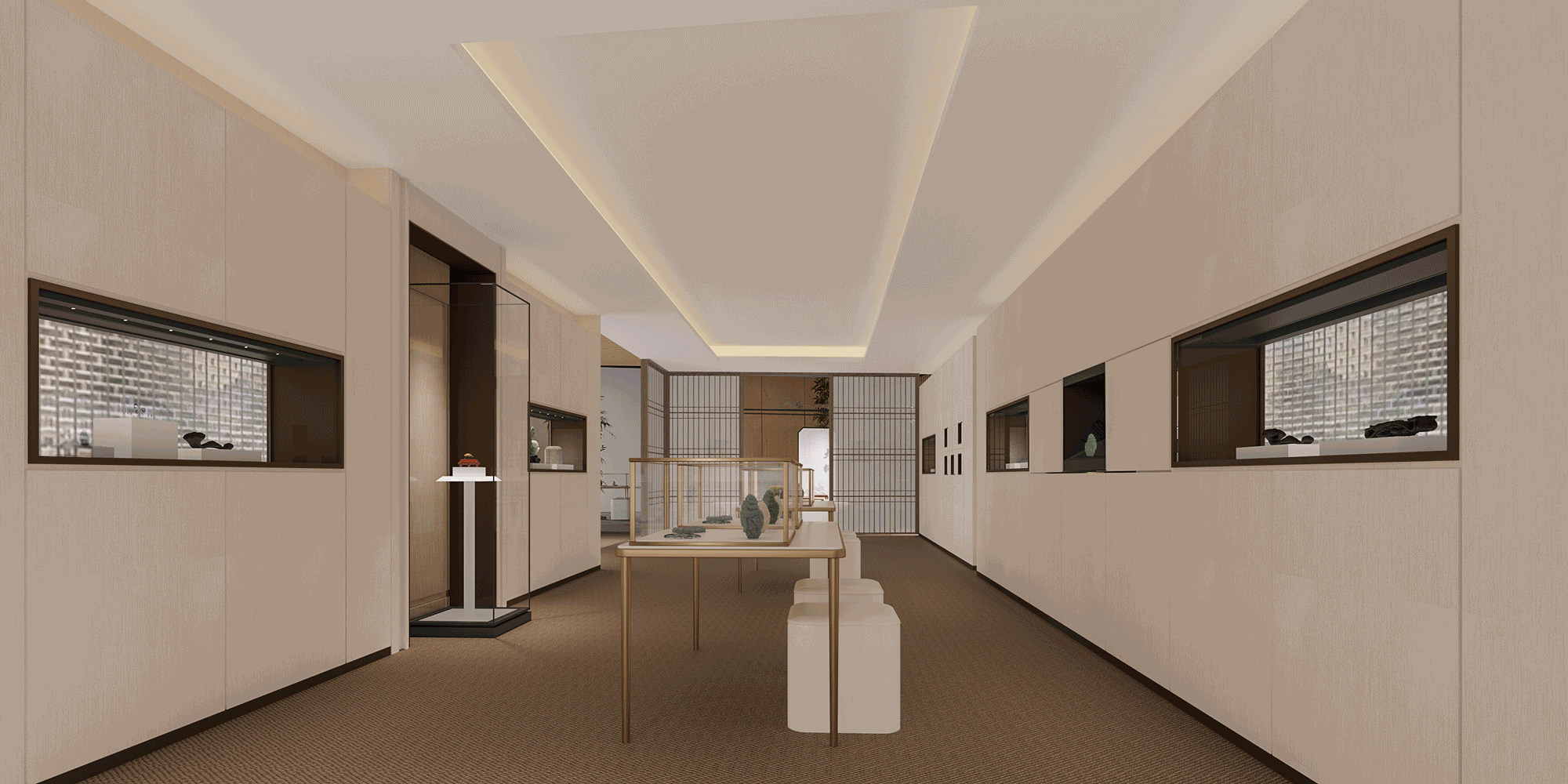 我們運用古典園林營造手法進行藝術化空間處理,并結合層次清晰、雅靜自然的光環境營造,展現出江南文化特有的意境與風韻,契合展銷主題。