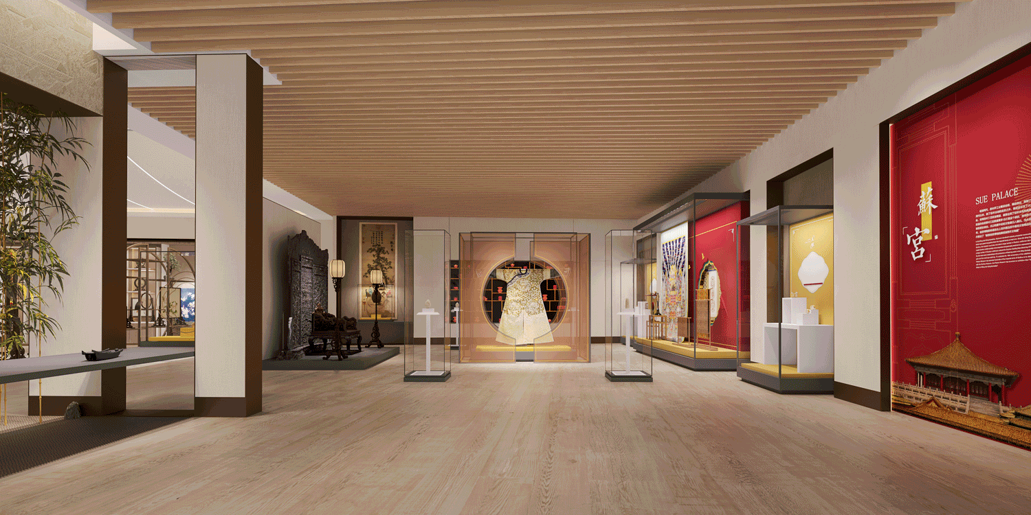 蘇工雕刻、宋錦、蘇扇……如何完美傳達種類繁多的蘇作精品之美、如何以展促銷從而實現空間的功能性?這是金螳螂文化團隊在設計中面對的重要試題。