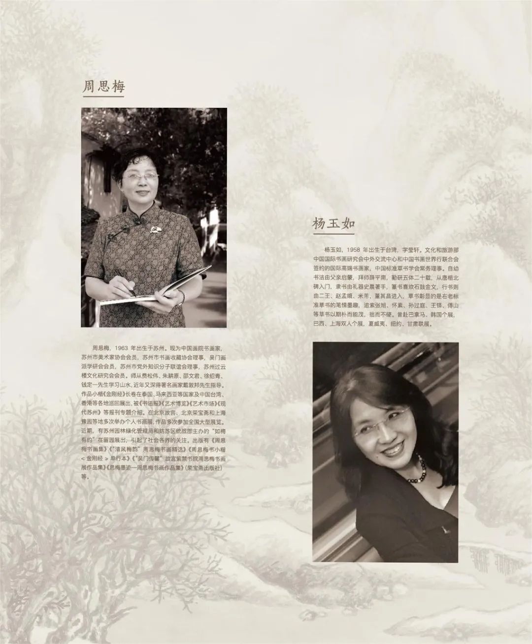 2015年,在一場(chǎng)“海峽兩岸寫經(jīng)展”上周思梅與楊玉如一見如故,并相約聯(lián)合舉辦展覽,各取兩人名字中一字,定名“如梅有約”。2021年,鐘愛江南文化的楊玉如定居蘇州,此后二人一同追摹古人、探討筆墨、追尋江南文脈。