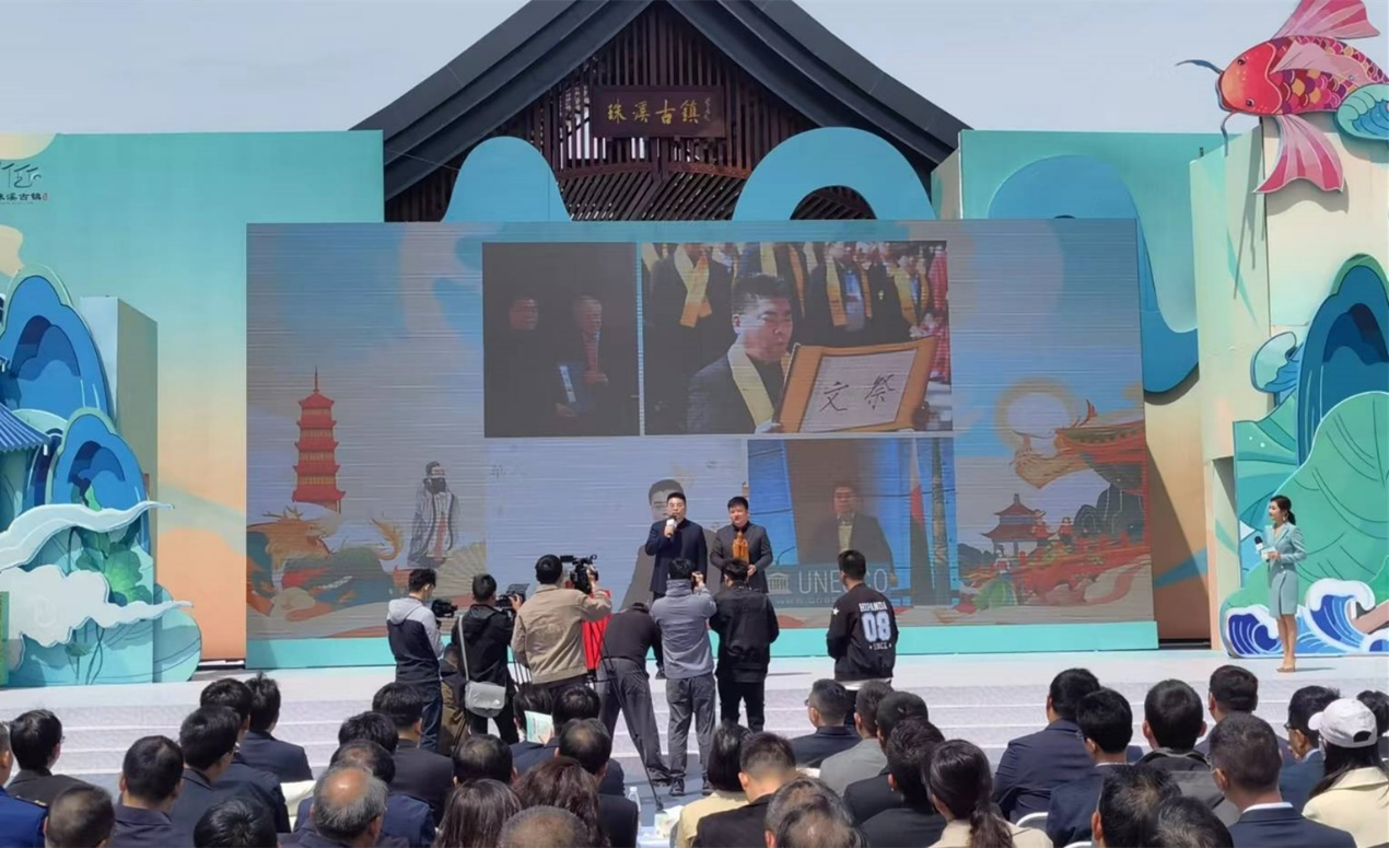 2023年4月29日,江蘇省鹽城市鹽南高新區(qū)伍佑街道舉行珠溪奇幻游園會(huì)暨珠溪古鎮(zhèn)開(kāi)街儀式。 珠溪是鹽城千年古鎮(zhèn),文化沉淀深厚,人文資源豐富,空間格局、街巷肌理保存較好。古鎮(zhèn)以“千年古鎮(zhèn)半日閑”為核心概念,結(jié)合《鏡花緣》古風(fēng)主題,舉辦文廟祭孔大典和新六藝國(guó)學(xué)活動(dòng),匯聚青年人喜聞樂(lè)見(jiàn)的“吾皇貓”和“混知”IP,用“大世界街頭藝術(shù)大狂歡” 的街頭舞臺(tái)演繹,讓古鎮(zhèn)集傳統(tǒng)文化、人間煙火和時(shí)尚藝術(shù)于一體,體現(xiàn)千年珠溪的閑適生活情趣。 作為珠溪古鎮(zhèn)的核心文化展陳項(xiàng)目,“珠溪文廟”由金螳螂文化自2021年開(kāi)始策劃,2022年4月建設(shè)完畢,在活動(dòng)當(dāng)天成功亮相,引來(lái)眾多游客的關(guān)注。 “崇文尚德”是珠溪古鎮(zhèn)之根,珠溪文廟始建至今已逾500多年。古時(shí)人們通過(guò)豐富的祭品,祈求科舉高中好運(yùn)。 活動(dòng)當(dāng)天,珠溪古鎮(zhèn)在文廟舉辦了盛大的圣像揭幕、祭拜大典、開(kāi)筆禮、冠禮、六藝國(guó)學(xué)講堂等活動(dòng)。 以“典雅肅穆、莊嚴(yán)神圣、天下大同”為基調(diào),融入珠溪文化和儒家文化的精粹,實(shí)現(xiàn)傳統(tǒng)文化與現(xiàn)代文化的完美結(jié)合。 值得一提的是,“珠溪文廟”項(xiàng)目的施工設(shè)計(jì)得到了孔裔國(guó)際集團(tuán)董事長(zhǎng),孔子76裔傳人孔令濤先生的高度贊揚(yáng)。 孔先生表示希望與金螳螂文化公司開(kāi)展更深入的合作,為建設(shè)和修復(fù)更多孔廟,傳承孔子思想攜手前行。 △ 孔裔國(guó)際集團(tuán)董事長(zhǎng)孔令濤先生(左三)與金螳螂文化吳迪工作室院長(zhǎng)吳迪先生(右二)合影 此外,在活動(dòng)開(kāi)幕儀式上,孔先生還向“珠溪文廟”贈(zèng)送了孔子像,這也是對(duì)珠溪古鎮(zhèn)文廟建設(shè)的高度認(rèn)可和褒揚(yáng)。 珠溪文廟是金螳螂文化文旅業(yè)務(wù)板塊的新力作,金螳螂文化后期會(huì)在保證文博主業(yè)務(wù)業(yè)內(nèi)領(lǐng)先地位的同時(shí),大力拓展文旅、城市文化更新展陳業(yè)務(wù),致力于成為國(guó)內(nèi)文博、文旅展陳業(yè)務(wù)雙領(lǐng)導(dǎo)品牌。 中華經(jīng)典源遠(yuǎn)流長(zhǎng),博大精深。金螳螂文化將繼續(xù)致力于傳承和弘揚(yáng)中華傳統(tǒng)文化,為中國(guó)的文旅事業(yè)貢獻(xiàn)力量。 珠溪古鎮(zhèn)作為一個(gè)綜合性文商旅新地標(biāo),也將繼續(xù)吸引更多游客前來(lái)欣賞其獨(dú)特的文化魅力,為鹽南高新區(qū)的經(jīng)濟(jì)發(fā)展注入新的動(dòng)力。 △ CCTV-13報(bào)道珠溪古鎮(zhèn)“國(guó)潮盛宴”相關(guān)內(nèi)容