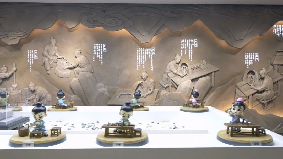 天工·水晶的匠心綻放”展區,以清光緒十七年李澄淵所繪《玉作圖》為浮雕背景,展示了古人對水晶雕刻經驗的長期積累并世代傳承。