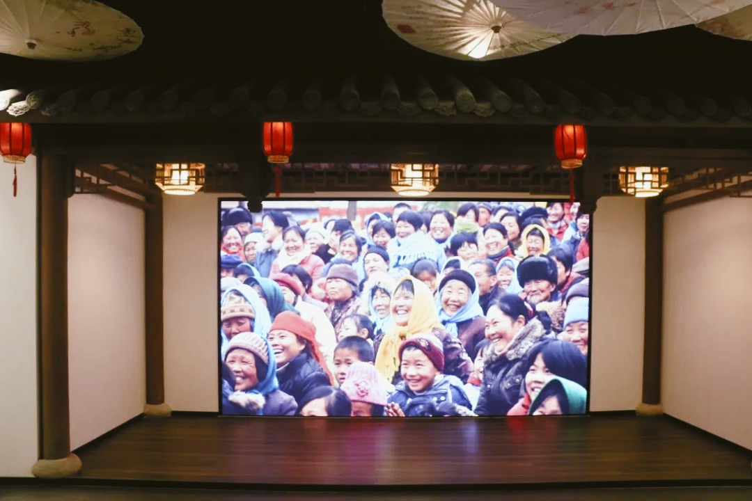 △ 透過花窗,“傳承·保護”四個字映入眼簾,展現著非遺精神